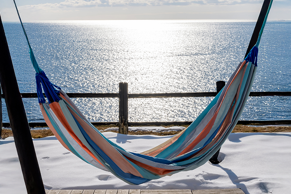 オープンテラスにはハンモックがございます。お昼寝をしたり、波の音を楽しんだり、読書をしたり…。ご自由にお使いください。